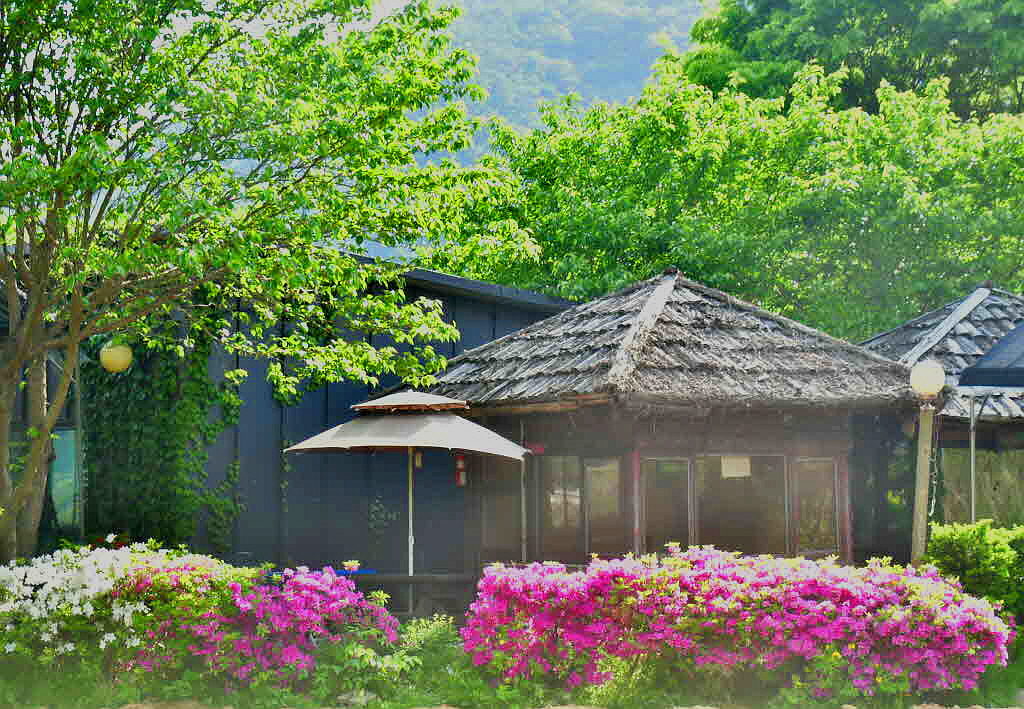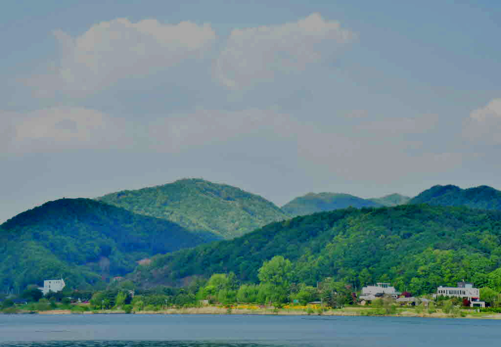 한적한 강마을 전원 카페에