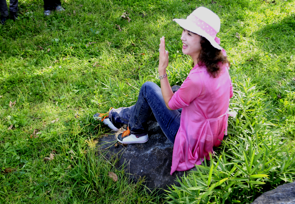 아름다운 맥문동 꽃길 속에서